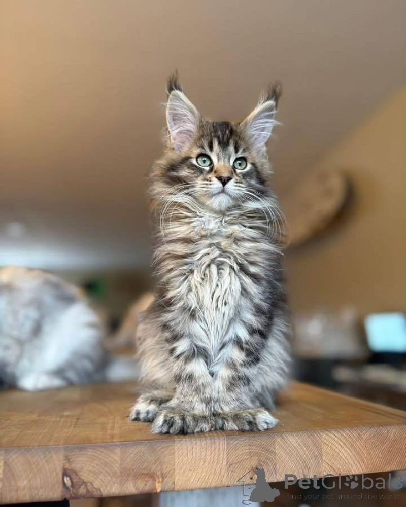 Maine Coon est une race assez grande, forte et robuste. Ses couleurs variées, sa laine épaisse et moelleuse le distinguent des autres animaux félins.